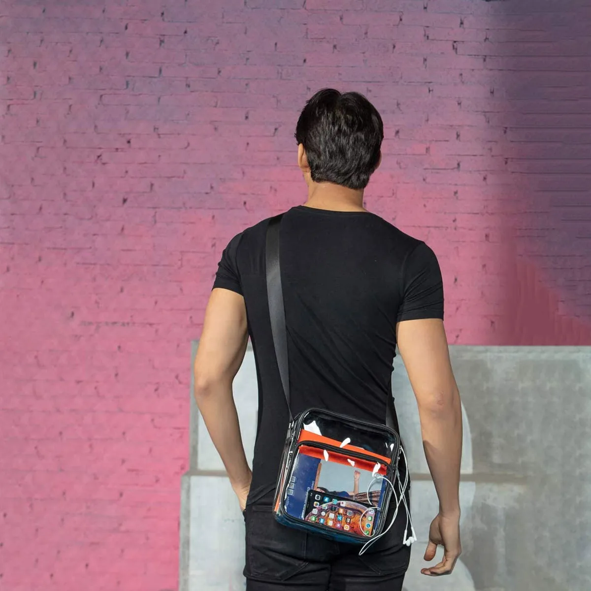 This crossbody messenger bag is designed for everyday convenience and hands-free carrying. Meets stadium/event clear-bag standards, speeding you through security checks at concerts, sports, and travel venues